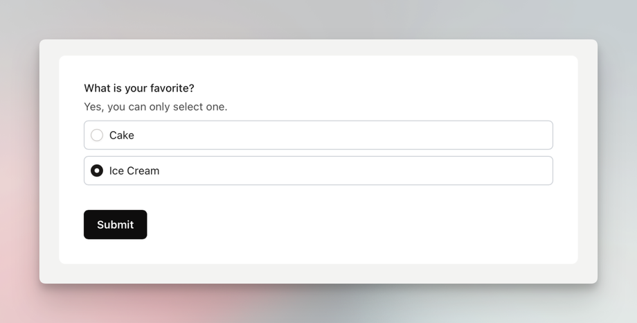 The "Single choice (Radio button)" element enables respondents to choose one out of multiple options. To enable respondents to choose multiple options, consider using the "Multiple choice (Checkbox)" field.